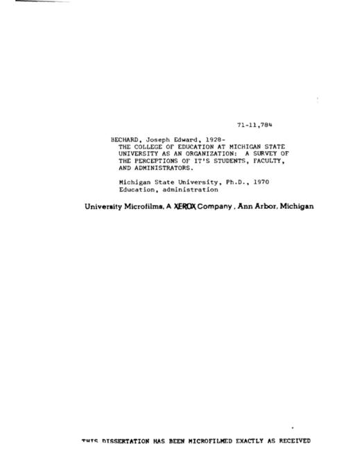 The College of Education at Michigan State University as an organization : a survey of the perceptions of its students, faculty and administrators