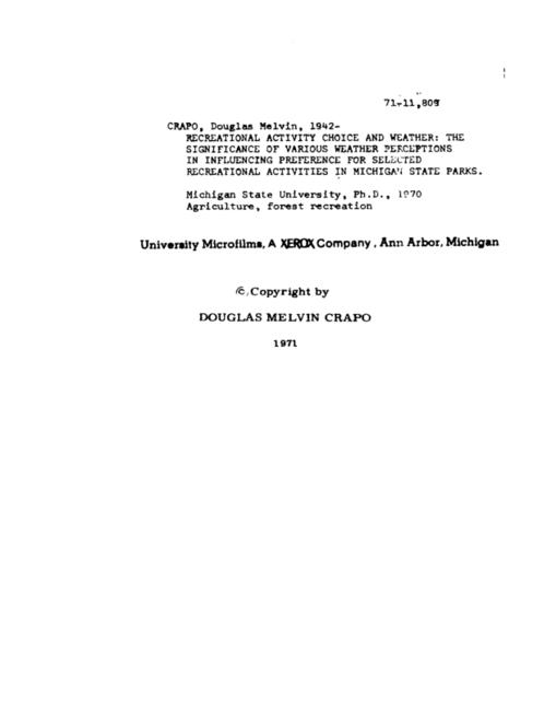 Recreational activity choice and weather : the significance of various weather perceptions in influencing preferences for selected recreational activities in Michigan State Parks
