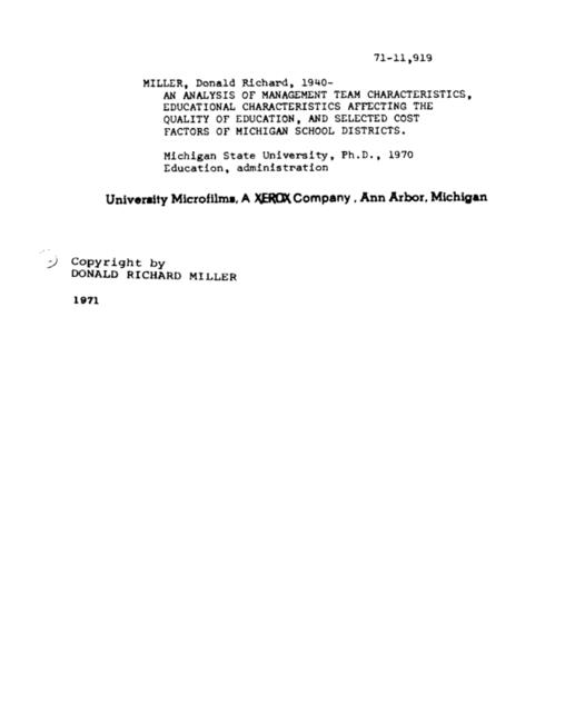 An analysis of management team characteristics, educational characteristics affecting the quality of education, and selected cost factors of Michigan school districts