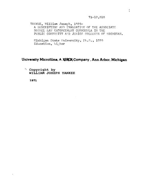 A description and evaluation of the associate degree law enforcement curricula in the public community and junior colleges of Michigan