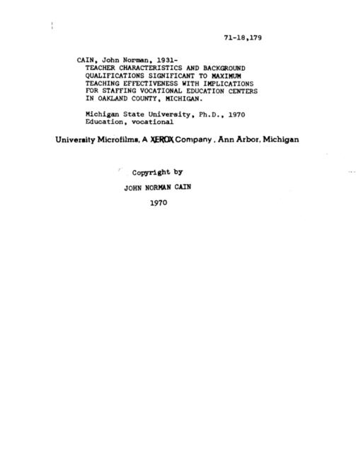 Teacher characteristics and background qualifications significant to maximum teaching effectiveness with implications for staffing vocational education centers in Oakland County, Michigan