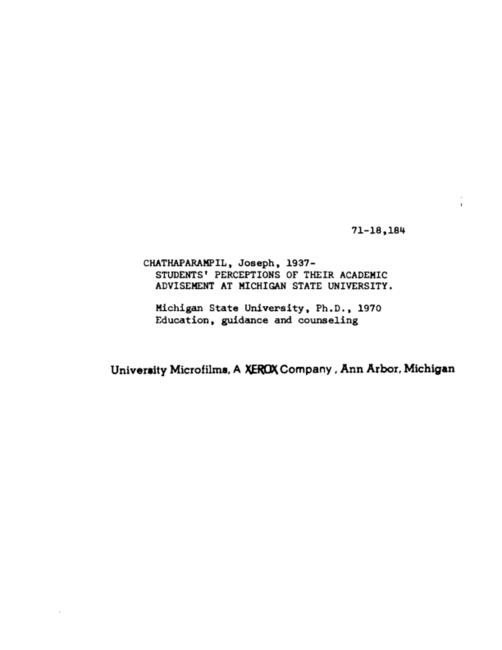 Students' perceptions of their academic advisement at Michigan State University