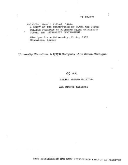 A study of the perceptions of black and white college freshmen at Michigan State University toward the university environment