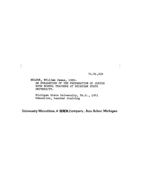 An evaluation of the preparation of junior high school teachers at Michigan State University