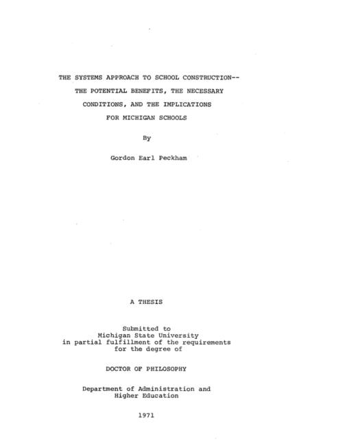 The systems approach to school construction : the potential benefits, the necessary conditions, and the implication for Michigan schools