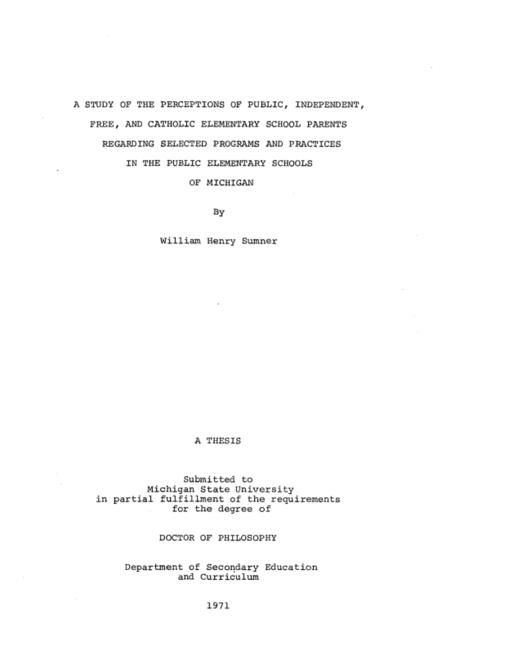 A study of the perceptions of public, independent, free, and Catholic elementary school parents regarding selected programs and practices in the public elementary schools of Michigan