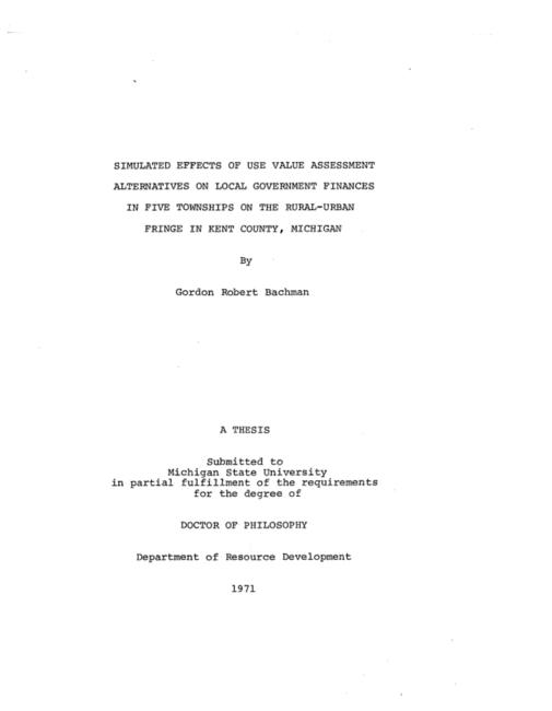 Simulated effects of use value assessment alternatives on local government finances in five townships on the rural-urban fringe in Kent County, Michigan