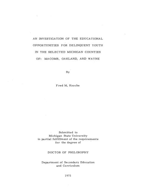 An investigation of the educational opportunities for delinquent youth in the selected Michigan counties of : Macomb, Oakland, and Wayne