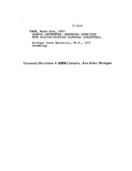 Acarina (Arthropoda : Arachnida) associated with selected Michigan Silphidae (Coleoptera)