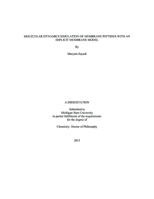 Molecular dynamics simulation of membrane peptides with an implicit membrane model