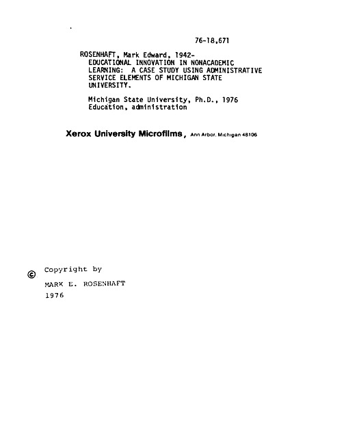 Educational innovation in nonacademic learning : a case study using administrative service elements of Michigan State University