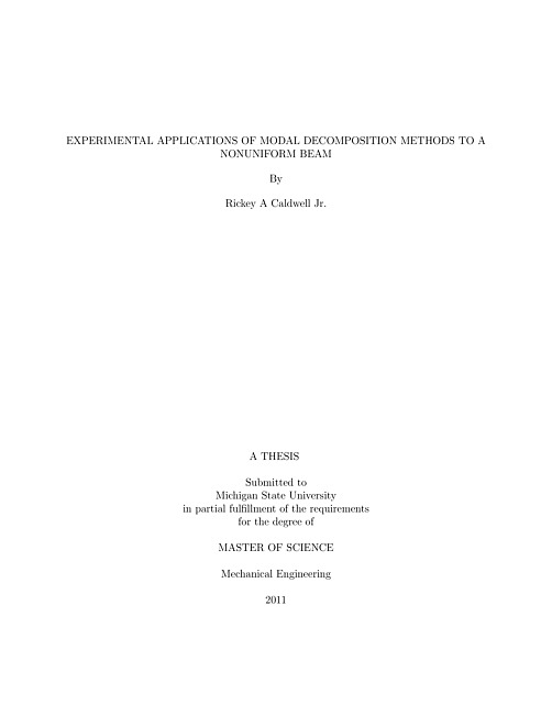 The goal of this research is to compute the mode shapes and in some cases the natural frequencies of a lightly damped freely vibrating nonuniform beam using sensed outputs, via accelerometers. The methods applied are reduced-ordered mass weighted proper decomposition (RMPOD), state variable modal decomposition (SVMD) and smooth orthogonal decomposition (SOD). A permutation of input impulse magnitudes, input locations, signal length, and acceleration, velocity, displacement ensembles were used in the RMPOD decomposition to gain some experience regarding the effects of input parameters and signal types on modal estimations. An analytical approximation to the modal solution of the Euler-Bernoulli beam equation is developed for nonuniform beams. In the case of RMPOD the theory is pushed into the experimental realm. For SVMD and SOD the science is also extended into the experimental realm and is additionally applied to nonuniform beams. The results of this thesis are as follows: the analytical approximation accurately predicted the mode shapes of the nonuniform beam and can accurately predict frequencies if the correct material properties are used in the computations. RMPOD extracted accurate approximations to the first three linear normal modes (LNMs) of the thin lightly damped nonuniform beam. SVMD and SOD extracted both the natural frequencies and mode shapes for the first four modes of the thin lightly damped nonuniform beam.