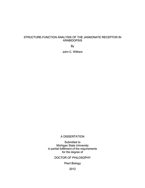 Structure-function analysis of the jasmonate receptor in Arabidopsis