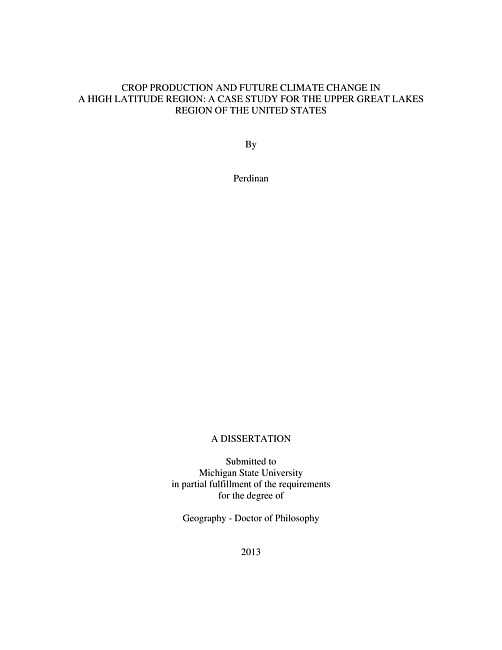 Crop production and future climate change in a high latitude region : a case study for the Upper Great Lakes region of the United States
