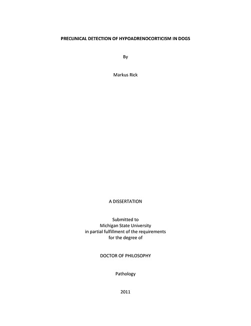 Approximately 70-90% of hypoadrenocorticism cases in human medicine result from immune-mediated adrenalitis. Although clinical signs are not present until ~90% of the adrenal cortex is destroyed, several different anti-adrenal autoantibodies can be identified in serum. In human medicine, presence of these antibodies constitutes the primary criteria for an early diagnosis of adrenalitis. Such a diagnostic tool is not currently available in veterinary medicine. However, from preliminary studies, we hypothesized that as in human hypoadrenocorticism, anti 21-hydroxylase antibody production occurs in canine hypoadrenocorticism. The antibody production precedes clinical disease, and is more prevalent in dog breeds susceptible to developing hypoadrenocorticism. The specific aims of the proposed research are to: 1) determine whether anti-adrenal autoantibodies are present in dogs with hypoadrenocorticism, 2) establish a diagnostic test to detect canine anti-adrenal autoantibodies, and 3) determine whether development of anti-adrenal autoantibodies has breed, sex, and age based predispositions. The canine 21-hydroxylase was expressed in E. coli, using standard techniques. The protein was purified and two rabbits and two dogs were immunized with the purified protein. The obtained positive control sera from these animals were used to establish an enzyme-linked immunosorbent assay (ELISA) for the detection of 21-hydroxylase autoantibodies in dogs. The preliminary data obtained with this ELISA showed that approximately 30% of dogs with naturally occurring primary Addison's disease produce antibodies against 21-hydroxylase. What remains unknown is whether autoantibody production precedes clinical disease, implying a role in the pathogenesis of the disease; if it is then the presence of 21-hydroxylase autoantibodies would be expected to be more prevalent in dog breeds susceptible to developing hypoadrenocorticism. Further development of the ELISA will enable epidemiologic studies to address specific aim three.