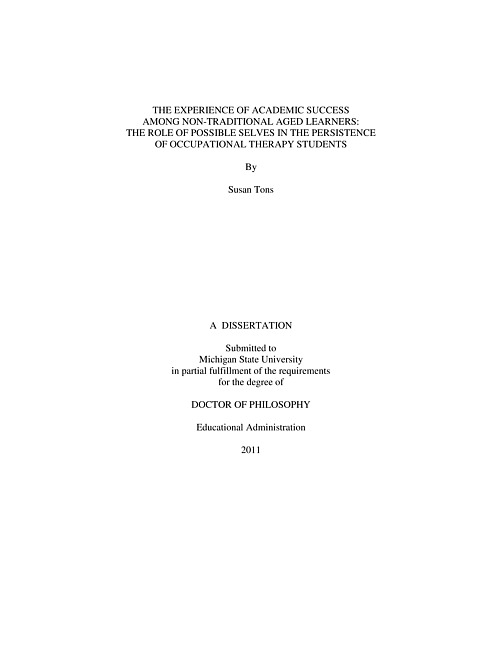 The experience of academic success among non-traditional aged learners : the role of possible selves in the persistence of occupational therapy students