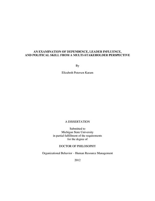 An examination of dependence, leader influence, and political skill from a multi-stakeholder perspective