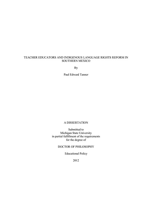 Nations throughout the world have increasingly looked at teacher education policy as a vehicle for reform of both the educational system and the society at large, and teacher quality is often positively associated with the quality of the overall educational system. Although such reforms often target pre-service teacher education, little is known about the teacher educators who play a central role in such reforms. While some studies have examined teachers as policy actors, little work has been done in the area of teacher educators as policy actors who interpret and implement education policy. This study fills that void by exploring the interaction between teacher educators' beliefs and values and a federal education policy in Mexico. One example of an attempt to engage in social reform by targeting teacher education is Mexico's General Law on the Linguistic Rights of Indigenous Peoples (2003), a measure aimed at improving educational opportunities for Mexico's diverse indigenous population, who suffer high poverty, low literacy, and limited educational opportunity. The law gives Mexico's indigenous students the right to a teacher who both writes and speaks the language of their community. It also requires Mexico's teacher education institutions to establish programs in Intercultural, Bilingual Education (IBE) and to include indigenous culture and languages in the curriculum. This study uses Spillane's (2006) cognitive sense-making framework to investigate how teacher educators in two southern Mexican states with large indigenous populations make sense of the reform. Employing a mixed-methods approach, I examined teacher educator attitudes and beliefs as both a catalyst for and an impediment to indigenous educational reform. I further considered whether or not such attitudes and beliefs are affected by the institutional and geographic contexts of the teacher educators and I looked at how the personal backgrounds of the teacher educators affected their beliefs and attitudes. I also analyzed the sources of policy information they found most useful in keeping current on recent educational policy. The study has broad implications for the fields of education, political science, and international development.