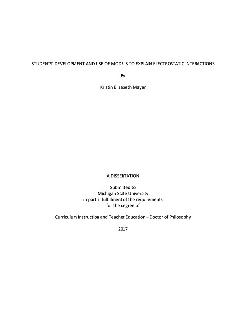 The National Research Council (2012) recently published A Framework for K-12 Science Education that describes a vision for science classrooms where students engage in three dimensions—scientific and engineering practices, crosscutting concepts, and disciplinary core ideas—to explain phenomena or observations they can make about the universe around them. This vision of science instruction is a significant shift from current classroom instruction. This dissertation provides detailed examples of how students developed and used models to build causal explanations of phenomena. I co-taught classes that focused on having students develop and revise models of electric fields and atomic structure using a curriculum that was designed to align with the three-dimensional vision of learning. I developed case studies of eleven students from these classes. I analyzed the students’ responses and interviewed the students throughout the school year. By comparing and contrasting the analysis across the analysis of students’ interviews, I identified four themes: 1) students could apply their ideas to explain novel and abstract phenomena; 2) students struggled to connect changes in their atomic models to evidence, but ended up with dynamic models of atomic structure that they could apply to explain phenomena; 3) students developed models of atomic structure that they applied to explain phenomena, but they did not use models of electric fields in this way; and 4) too much focus on details interfered with students’ ability to apply their models to explain new phenomena. This dissertation highlights the importance of focusing on phenomena in classrooms that aim at aligning with three-dimensional learning. Students struggled to focus on specific content and apply their ideas to explain phenomena at the same time. In order to apply ideas to new context, students had to shift their focus from recalling ideas to applying the ideas they do have. A focus on phenomena allowed students to show their understanding through applying their ideas to new context. During this transition, students struggled, and in particular, had a hard time using evidence from experiments to justify the changes they made to their models of atomic structure. While the changes students made looked unproductive at times, by the end of the semester, students had developed models of atomic structure that incorporated relationships among charged components that they could apply to explain complex phenomena. Asking students to explore and evaluate their own ideas supported their development of models that they could apply to explain new context they experience in their future.
