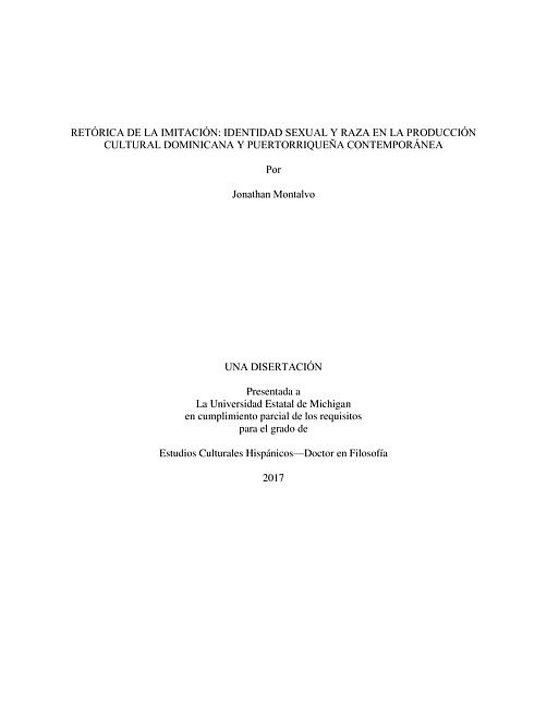 Retórica de la imitación : identidad sexual y raza en la producción cultural dominicana y puertorriqueña contemporánea