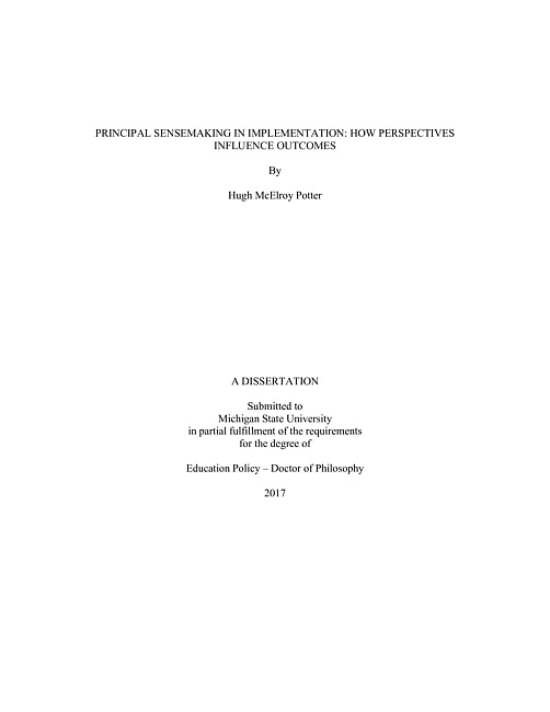 Principal sensemaking in implementation : how perspectives influence outcomes