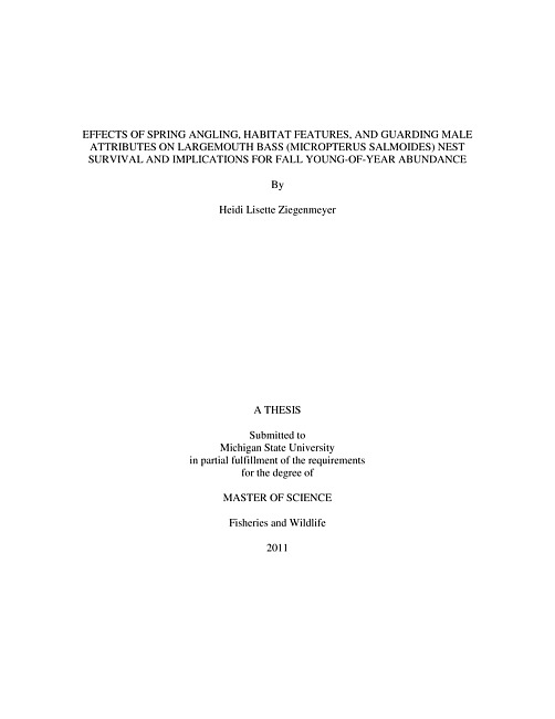 Effects of spring angling, habitat features, and guarding male attributes on largemouth bass (Micropterus salmoides) nest survival and implications for fall young-of-year abundance