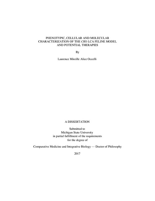 Phenotypic, cellular and molecular characterization of the CRX-LCA feline model and potential therapies