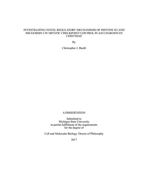 Investigating novel regulatory mechanisms of histone H3 and Shugoshin I in mitotic checkpoint control in Saccharomyces cerevisiae