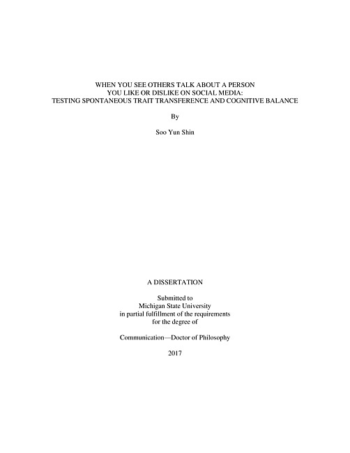 When you see others talk about a person you like or dislike on social media : testing spontaneous trait transference and cognitive balance