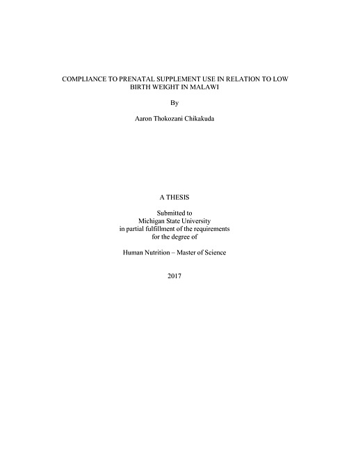 Compliance to prenatal supplement use in relation to low birth weight in Malawi