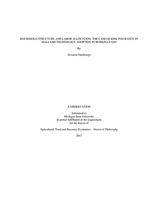 Household structure and labor allocation : the case of risk insurance in Mali and technology adoption in Burkina Faso