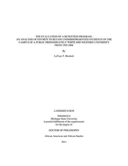 The evaluation of a retention program : an analysis of efforts to retain underrepresented students on the campus of a public predominately white mid-western university from 1995-2006