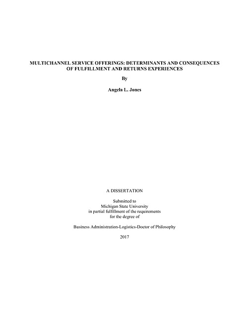 "My three essay dissertation considers fulfillment and returns service offerings in multi-channel supply chains. The demand for multichannel offerings is growing and though there are benefits for multichannel retailers, there is also greater complexity of the fulfillment and returns network. Through this research I examine the drivers and outcomes of retailer multichannel offerings. Essay 1 examines customer channel choice for retail returns. Retailers are increasingly offering more ways for customers to shop and interact through different channels, including options for returning product through different channels. Some consumers choose to stay in the same channel when returning product, while others choose to switch channels. Survey research was conducted to analyze how differences between consumers staying in the same channel or switching channels for returns influences how the retailing experience relates to customer satisfaction and behavior. The results support that delivery performance and returns convenience positively relate to customer satisfaction, and there is a stronger positive effect of delivery performance on customer satisfaction for customers that stay in the same channel for returns. Essay 2 considers boundary conditions of the relationship between interpersonal and informational justice and satisfaction and customer behavioral intentions. A scenario based experiment was used to test the relationships of interest. Scenarios include manipulations of interpersonal justice, informational justice, and moderator variables. Results support a direct effect of interpersonal and information justice on satisfaction and customer behavioral intentions. There is also support for moderating effects of attributions of blame, returns policy restrictiveness, and returns process convenience on the relationships between interpersonal justice and certain outcome variables. Essay 3 examines the effects of multichannel offerings on retailer performance. Two of the multichannel offerings examined relate to order fulfillment (buy online pick up in store and ship from store) and one of the multichannel offerings relates to returns management (return to store). Secondary data was analyzed to test the relationships of interest. Support was found that multichannel offerings related to aspects of order fulfillment have an effect on retailer performance."--Pages ii-iii.