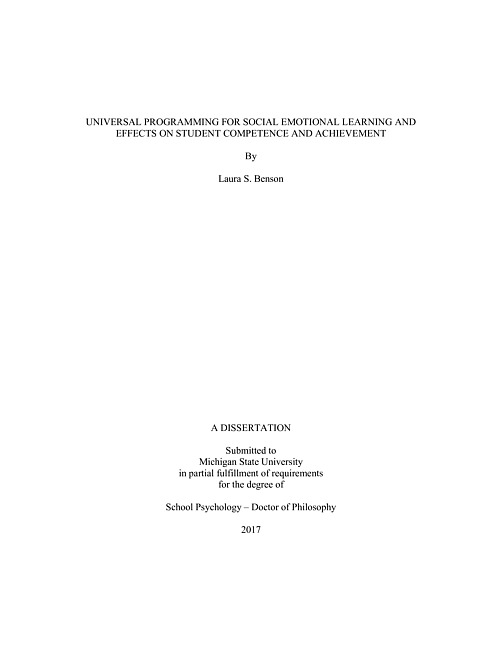 "Many students have inadequate social-emotional skills, which, can negatively affect academic performance, behavior, and overall well-being (Blum, Libbey, Bishop, & Bishop, 2004; Rimm-Kaufman, Pianta, & Cox, 2000; Zigler & Bishop-Josef, 2006). Schools, because of their public educational role and the significant time that children spend there, can provide an ideal context for social-emotional development and intervention (Rones & Hoagwood, 2000; Weisz, Sandler, Durlak, & Anton, 2005). Students who have experienced high quality, schoolbased, social-emotional learning (SEL) programs have demonstrated improved academic performance, attitudes toward school, and social-emotional skills as well as reduced conduct problems, anxiety, and aggression (Durlak et al., 2011; Payton et al., 2008). Yet, school infrastructures often fail to support the integration of SEL programming in ways that are sustainable and embedded in the day-to-day functioning of students and educators. The purpose of this study was to examine the potential benefits of integrating Second Step (Committee for Children, 2012), a widely disseminated school-based SEL program, into an existing tiered model of educational programming. As such, the study addressed the following research questions: Controlling for baseline skills, do students receiving Second Step show greater improvement in social-emotional competence and academic achievement than students in a wait-list comparison group? If so, do improvements depend on student level of learning risk at baseline? Are intervention effects moderated by gender? The primary research questions are answered through secondary analysis of existing data using a quasi-experimental wait-list comparison group design with pretest and posttest. The dataset included teacher ratings of social-emotional competence and academic achievement data collected at baseline and following SEL intervention for all students attending one elementary school. The hypothesis that all students would benefit similarly from Second Step received mixed support. Statistically significant improvements for the intervention group were found only for academic outcomes and not social-emotional competence. Post-hoc analysis revealed that grade level moderated the effects of treatment, indicating that Second Step produced significantly greater gains in social-emotional competence and academic achievement for lower elementary students compared to upper elementary students. Lower elementary students' empathy skills, reading scores, and math scores significantly improved among those receiving Second Step compared to lower elementary students in the comparison group. The positive effects of Second Step participation on reading scores were specific to students demonstrating a moderate level of learning risk at baseline., Overall, girls showed greater improvements in social-emotional competence from pretest to posttest than boys, but gender did not moderate students' response to intervention as predicted."--Pages ii-iii.
