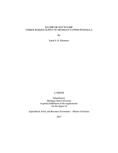 To chip or not to chip : timber residue supply in Michigan's Upper Peninsula