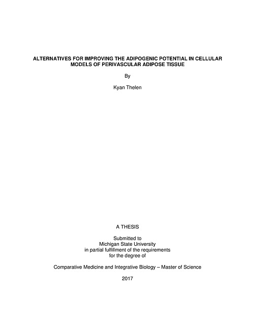 "Adipose tissue is an important multi-depot and multi-function organ. Each depot exhibits a unique phenotype relative to its anatomical location and specific function. Among adipose depots, the perivascular adipose tissue (PVAT) is a major regulator of blood vessel function due to its proximity to the vasculature and its ability to secrete vasoactive molecules. The comprehensive study of PVAT biology requires in vivo, ex vivo, and reductionist approaches. Adipogenic models of PVAT, where preadipocytes from these tissues are induced to differentiate into adipocytes, are an important reductionist model that can be used to study the perivascular adipocyte. However, the development of PVAT cellular models is challenging because the standardized pharmacological induction of adipogenesis does not have the same efficacy when used across multiple PVAT depots. Different research laboratories have attempted to increase the efficiency of the standard pharmacological adipogenesis induction by pairing it with alternative approaches to cell culture to improve adipogenesis simultaneously such as polymer structures, matrices, and co-cultures. These have been effective in differentiating adipocytes from other visceral adipocytes, but not yet reported to be used in PVAT adipocytes. Another difficulty in adipogenic modeling is that preadipocyte populations in each depot have different adipogenic potential. As not all fibroblast like cells in adipose will differentiate into adipocytes, adipogenic capacity is determined by a population of cells committed to differentiation called adipocyte progenitor cells (APC). These cells, that express a unique profile of specific surface markers, must be isolated from the stromal vascular fraction (SVF) of the adipose. The goal of this thesis was to develop alternative methods to improve the efficiency of current models of adipogenesis in PVAT. We first adapted the use of magnetic activate cell sorting (MCS) to isolate adipocyte progenitor cells (APC). These adipocyte precursors must then be cultured to initiate adipogenesis in order to study mature adipocytes that are phenotypically and functionally similar to primary adipocytes of the same depot. Next, we developed a co-culture method that improved the adipogenesis efficiency and reduced the time required to induce differentiation in a cell culture model of PVAT. Our work provides a method to isolate APC from PVATs and a method using co-culture to differentiate PVAT preadipocytes, both of which are efficient in creating a more accurate depot-specific PVAT model of adipogenesis."--Abstract.