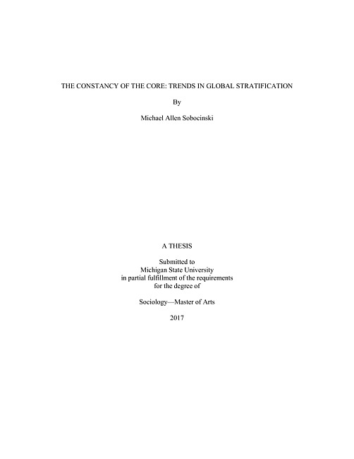 "Theoretical perspectives on international stratification include concepts involving strata or tiers of countries that have different levels of development, or different relations with the global economy. The two dominant theoretical traditions are world-systems and modernization theories. In this paper, I consider both perspectives while examining how the stratification of countries has changed since 1960. Fifty years of World Bank data on national GDP were examined and rank-ordered, tracking shifts in the positions of important countries and assessing these patterns to see whether the data were more consistent with one of these theories. The results showed a pattern in which the world's wealthiest states stably tended to constitute approximately 15% of the world's population over time. This pattern supported the idea of a 'core' economic area, as defined by world-systems theory, but the distribution of states with the bottom 85% of the world's population provided evidence against other concepts of world-systems theory and was better accounted for by modernization theory. The number of states that are predominantly peripheral in character has been shrinking greatly over time, and the population within those states now constitutes a minority of the world's population, while the majority of the world now lives in what have been characterized as semi-peripheral areas. Longitudinal economic data therefore strongly suggests that the original world-systems classification schema must be revised, reconciled with, or replaced by modernization theory in order to accurately describe the 21st century world economy."--Page ii.