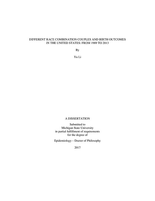 Different race combination couples and birth outcomes in the United States : from 1989 to 2013