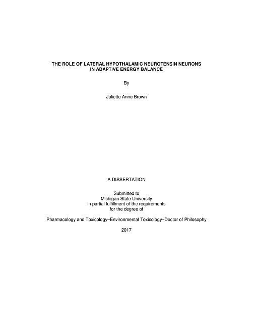 The role of lateral hypothalamic neurotensin neurons in adaptive energy balance