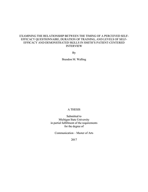 Examining the relationship between the timing of a perceived self-efficacy questionnaire, duration of training, and levels of self-efficacy and demonstrated skills in Smith's Patient-Centered Interview