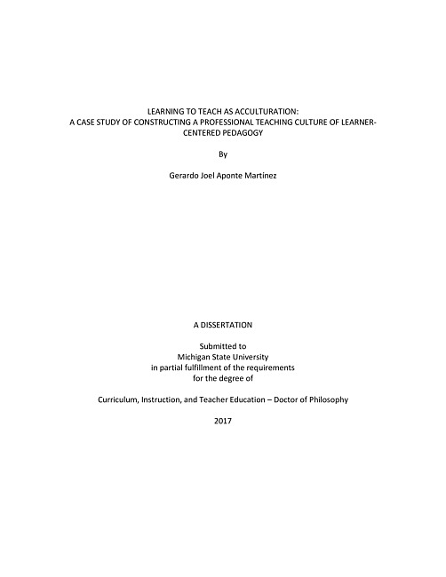 Learning to teach as acculturation : a case study of constructing a professional teaching culture of learner-centered pedagogy