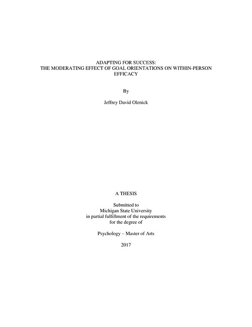 Adapting for success : the moderating effect of goal orientations on within-person efficacy