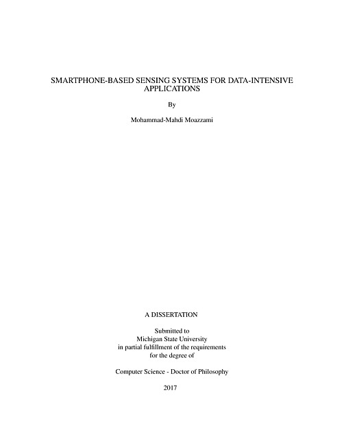 "Supported by advanced sensing capabilities, increasing computational resources and the advances in Artificial Intelligence, smartphones have become our virtual companions in our daily life. An average modern smartphone is capable of handling a wide range of tasks including navigation, advanced image processing, speech processing, cross app data processing and etc. The key facet that is common in all of these applications is the data intensive computation. In this dissertation we have taken steps towards the realization of the vision that makes the smartphone truly a platform for data intensive computations by proposing frameworks, applications and algorithmic solutions. We followed a data-driven approach to the system design. To this end, several challenges must be addressed before smartphones can be used as a system platform for data-intensive applications. The major challenge addressed in this dissertation include high power consumption, high computation cost in advance machine learning algorithms, lack of real-time functionalities, lack of embedded programming support, heterogeneity in the apps, communication interfaces and lack of customized data processing libraries. The contribution of this dissertation can be summarized as follows. We present the design, implementation and evaluation of the ORBIT framework, which represents the first system that combines the design requirements of a machine learning system and sensing system together at the same time. We ported for the first time off-the-shelf machine learning algorithms for real-time sensor data processing to smartphone devices. We highlighted how machine learning on smartphones comes with severe costs that need to be mitigated in order to make smartphones capable of real-time data-intensive processing. From application perspective we present SPOT. SPOT aims to address some of the challenges discovered in mobile-based smart-home systems. These challenges prevent us from achieving the promises of smart-homes due to heterogeneity in different aspects of smart devices and the underlining systems. We face the following major heterogeneities in building smart-homes:: (i) Diverse appliance control apps (ii) Communication interface, (iii) Programming abstraction. SPOT makes the heterogeneous characteristics of smart appliances transparent, and by that it minimizes the burden of home automation application developers and the efforts of users who would otherwise have to deal with appliance-specific apps and control interfaces. From algorithmic perspective we introduce two systems in the smartphone-based deep learning area: Deep-Crowd-Label and Deep-Partition. Deep neural models are both computationally and memory intensive, making them difficult to deploy on mobile applications with limited hardware resources. On the other hand, they are the most advanced machine learning algorithms suitable for real-time sensing applications used in the wild. Deep-Partition is an optimization-based partitioning meta-algorithm featuring a tiered architecture for smartphone and the back-end cloud. Deep-Partition provides a profile-based model partitioning allowing it to intelligently execute the Deep Learning algorithms among the tiers to minimize the smartphone power consumption by minimizing the deep models feed-forward latency. Deep-Crowd-Label is prototyped for semantically labeling user's location. It is a crowd-assisted algorithm that uses crowd-sourcing in both training and inference time. It builds deep convolutional neural models using crowd-sensed images to detect the context (label) of indoor locations. It features domain adaptation and model extension via transfer learning to efficiently build deep models for image labeling. The work presented in this dissertation covers three major facets of data-driven and compute-intensive smartphone-based systems: platforms, applications and algorithms; and helps to spurs new areas of research and opens up new directions in mobile computing research."--Pages ii-iii.
