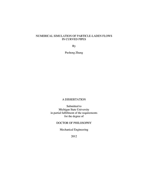 Particulate flows in curved pipes are commonplace in a variety of settings and involve aerosol deposition in airways as well as solids or droplets impacting pipe walls. The presence of bends in such flows is well-known to be associated with large pressure drops and phase separation due to the centrifugal force. The consideration of bends is thus important in designing multiphase flow equipment and pipes. For example, natural gas transported in pipes is often wet and water droplets, as they pass through the bend, may impact the bend wall where they form a film; this may well influence the performance of separation equipment located downstream. Phenomena associated with flows through curved pipes, such as the formation of secondary flow patterns, are thus studied in this work in order to evaluate their effects on the disperse phase. In addition, the accuracy of the numerical simulations for such flows is often in question when compared with experiments. This may be due to a number of factors which include the selection of an appropriate multiphase model and turbulence closure, or numerical aspects such as the quality of the treatment of the near wall behavior. In the first part of this work, dilute particle flows in curved pipes are modeled using one-way and two-way coupled models. In one-way coupling simulations, the influence of the particles on the carrier phase is ignored. The influence of turbulence closures on the flow and particle trajectories are investigated. The "standard" k-å model and the Reynolds Stress Model (RSM) based on the Reynolds-Averaged Navier-Stokes (RANS) equation are employed with different near-wall treatments. For two-way coupling simulations, the drift flux model based on the mixture theory is used to consider the interaction between the phases. A realizable k-å model is employed to close the RANS equation and the Enhance Wall Treatment (EWT) is applied for the flow in the near-wall region. Results show that the pressure drop of a single phase flow along the curved pipe is well predicted by the turbulent closures studied. For one-way coupled simulations, RSM with EWT is accurate in estimating grade efficiency curves. Compared to other possible combinations, using RSM with EWT can improve the accuracy by as much as 19% in a 90° bend and up to 30% in a 180° bend. The results of these simulations have allowed the development of an improved correlation for predicting grade efficiency curves. For two-way coupled simulations, results show that the pressure drop is significantly affected by the disperse phase. The computed pressure has a good agreement with the empirical correlation of Paliwado. Bend design using the mixture model shows that 90° and 180° bends with the curvature ratios equal to 5 and 7 respectively can be used to achieve a high deposition efficiency with a relatively low pressure drop. Following the above studies, a modification of the Immersed Boundary (IB) method, an approach for the simulation of particles moving in a fluid, is introduced to perform a preliminary validation of the closures used in multiphase flow modeling. An algorithm is implemented to combine the MacCormack scheme with the IB method. The technique is applied to particulate-laden flow simulations. This data is used to verify the performance of the mixture model on estimating particle behaviors in Couette flows and Poiseuille flows. Results show that IB method based on the MacCormack scheme is promising in dealing with fluid-structure interaction especially for particulate-laden flows. Comparison between the DNS data and the mixture model indicates that the mixture model is not able to capture particle migration. To improve the performance, the lift force needs to be considered in the model used to close the slip velocity.