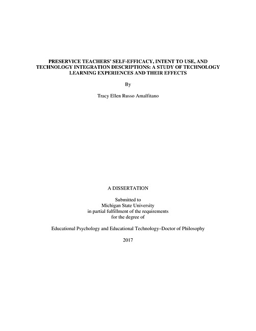Preservice teachers' self-efficacy, intent to use, and technology integration descriptions : a study of technology learning experiences and their effects
