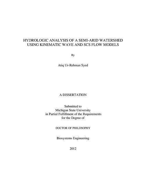 Hydrologic analysis of a semi-arid watershed using kinematic wave and SCS flow models