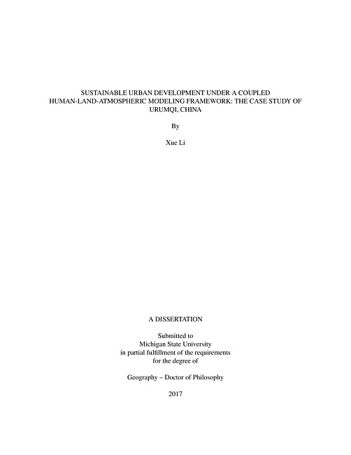 Sustainable urban development under a coupled human-land-atmospheric modeling framework : the case study of Urumqi, China