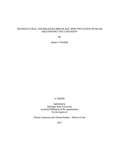 Transcultural and religious bricolage : how the Nation of Islam (re)constructed a religion