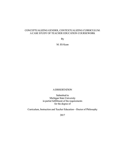 Conceptualizing gender, contextualizing curriculum : a case study of teacher education coursework
