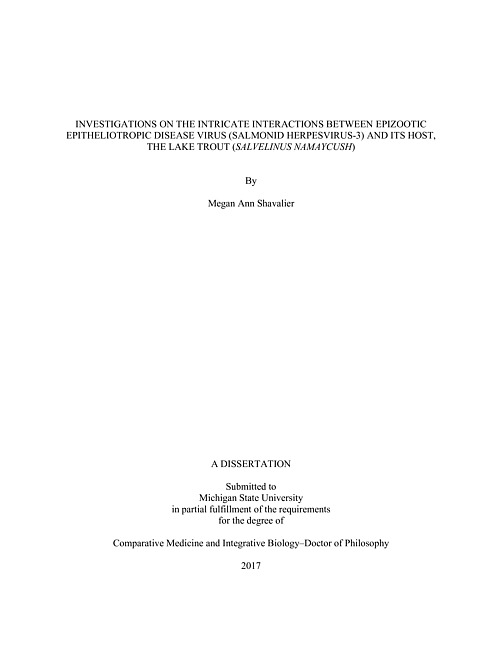 Investigations on the intricate interactions between Epizootic Epitheliotropic Disease Virus (Salmonid Herpesvirus-3) and its host, the lake trout (Salvelinus namaycush